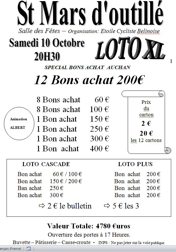 Une date à retenir le 10 octobre loto du club de L ECB