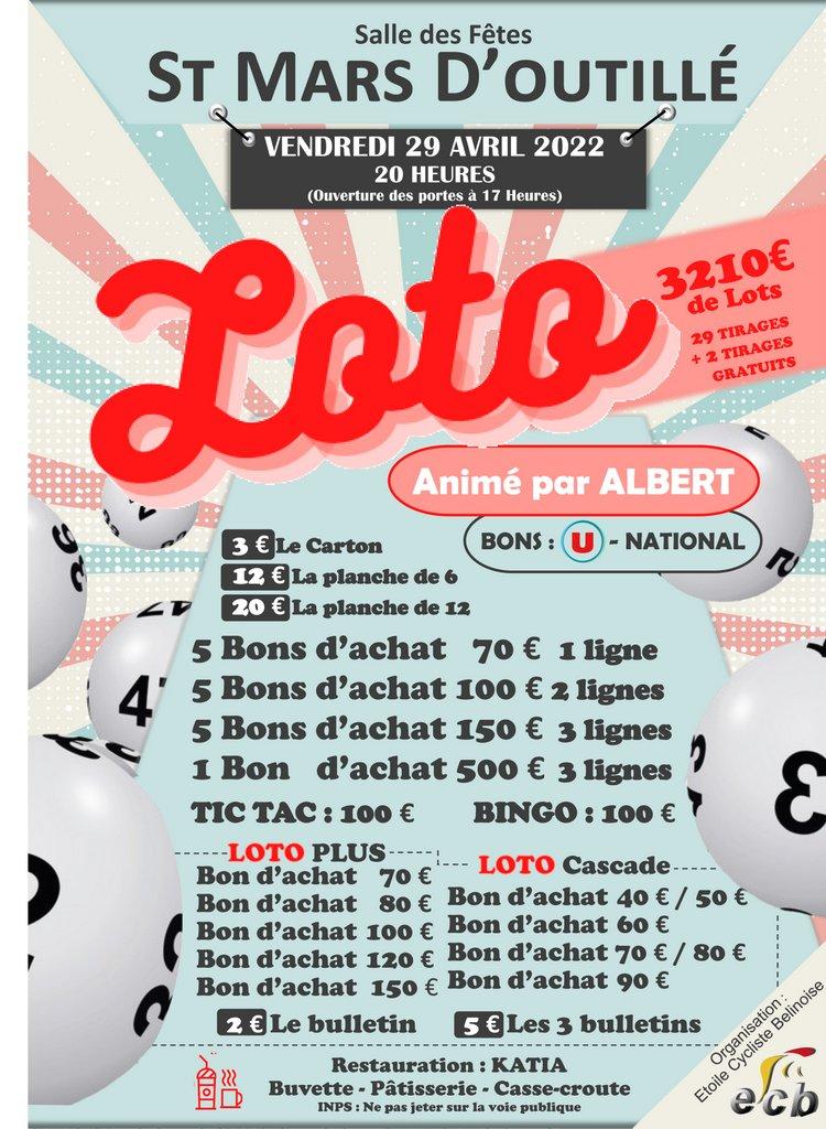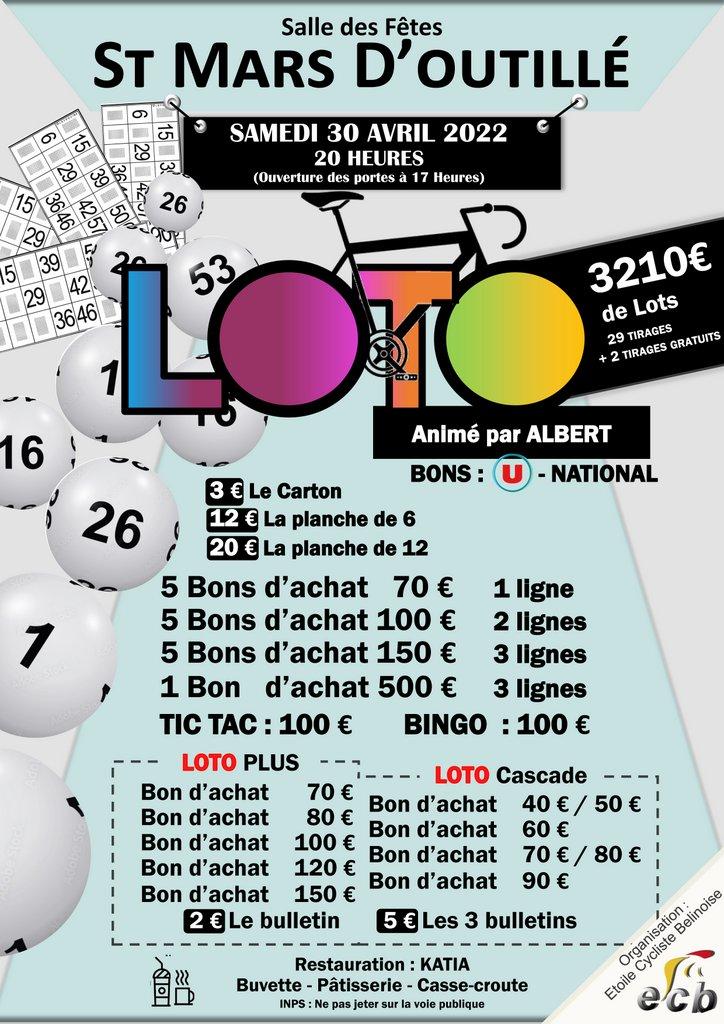 LOTO DU 29 ET 30 AVRIL 2022 ST MARS D’OUTILLE
