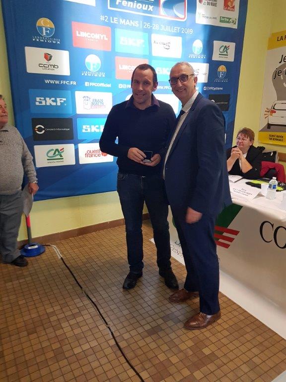 Lors de l’assemblée général ffc sarthe à St Michel de Chavaignes Mickael Hamelin mis à l’honneur avec une médaille de Bronze