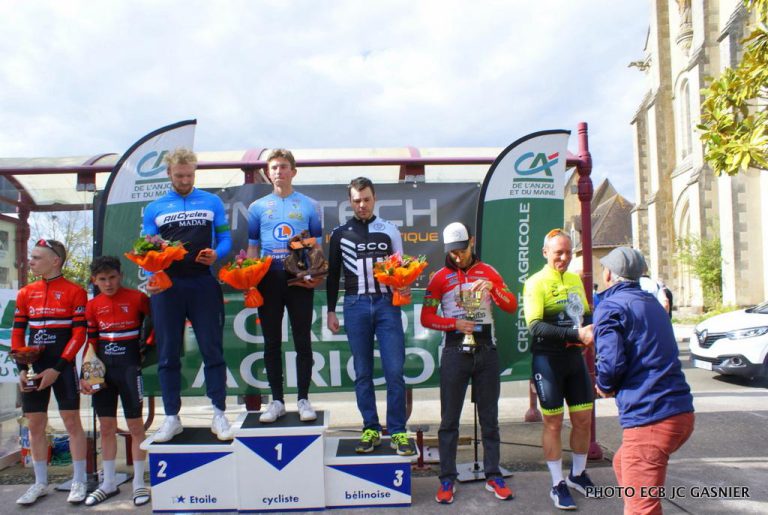 Le 22/04/2023 Podium de la course de ce jou 22/04 à Laigne en Belin Prix de Commerçants et Artisans Souvenirs Bernard Founière bravo à tous Coureurs, Partenaires, BénévolesKevin Fournière 33ème , Antonin Clinchamp (chute , Antonin était bien on le voit…